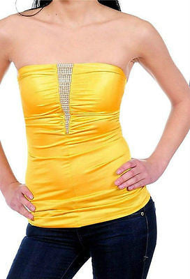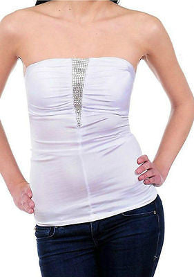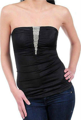 Strapless Tube Top Rhinestone Sparkling Satin Solid Shirred Stretch Club