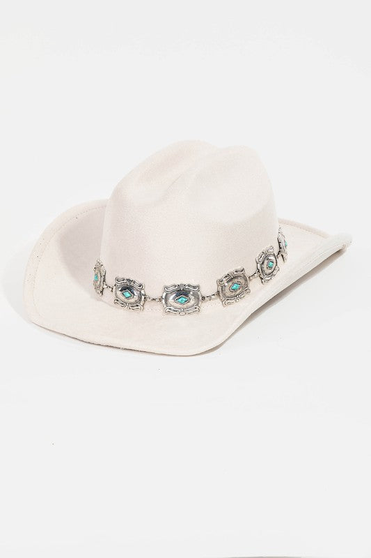 Ivory Western Concho Chain Disc Fedora Women&
